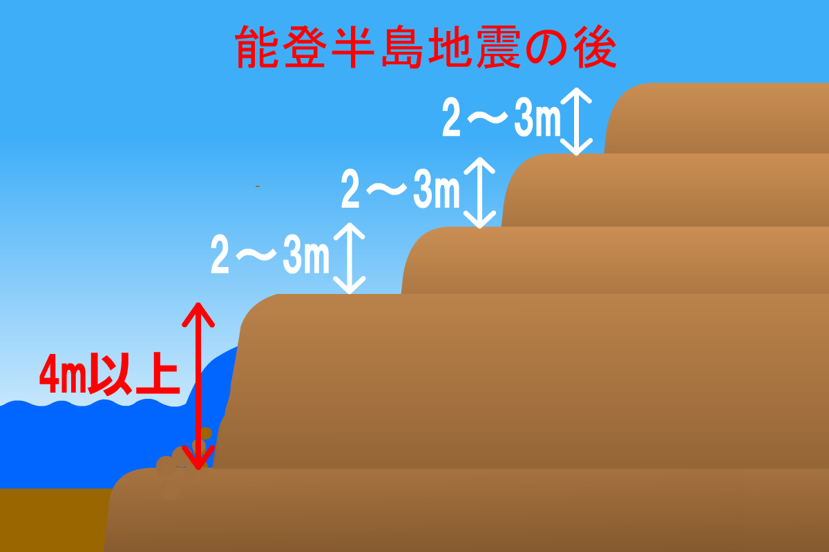 地震で4段目ができた階段状の地形はどうやってできたのだろう?