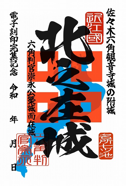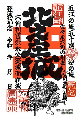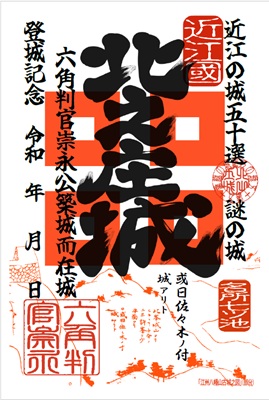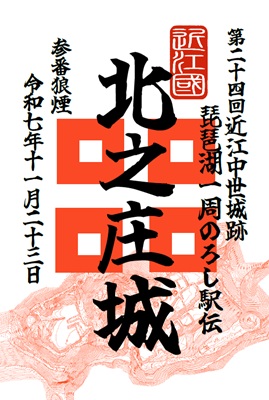 北之庄城の御城印は、北之庄里山を守る会が北之庄城の上段曲輪(北之庄山山頂)だけで配布しています。№1は、2023年まで「中世城跡琵琶湖一周のろし駅伝」の際に配布していた本城跡の初代御城印です。