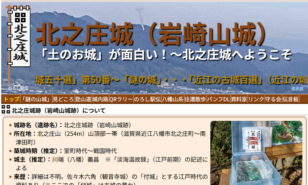 …八幡山山系の中央部、北之庄山に築かれた中世の山城、北之庄城の総合紹介サイト