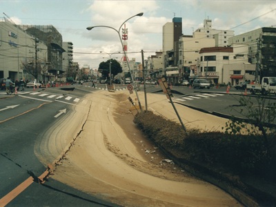 液状化で陥没した道路