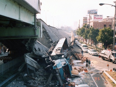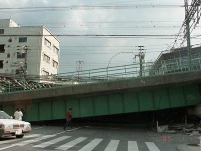 たおれた阪神高速道路