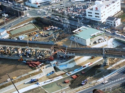 くずれた新幹線の高架橋