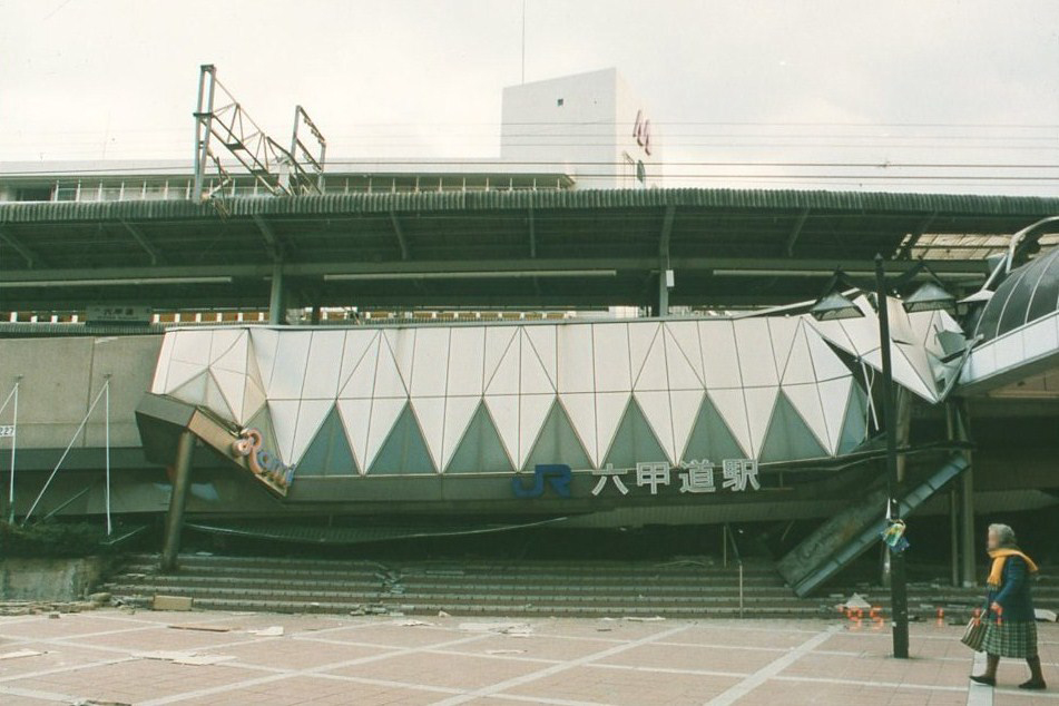 くずれた六甲道駅(灘区)1995/1/17撮影