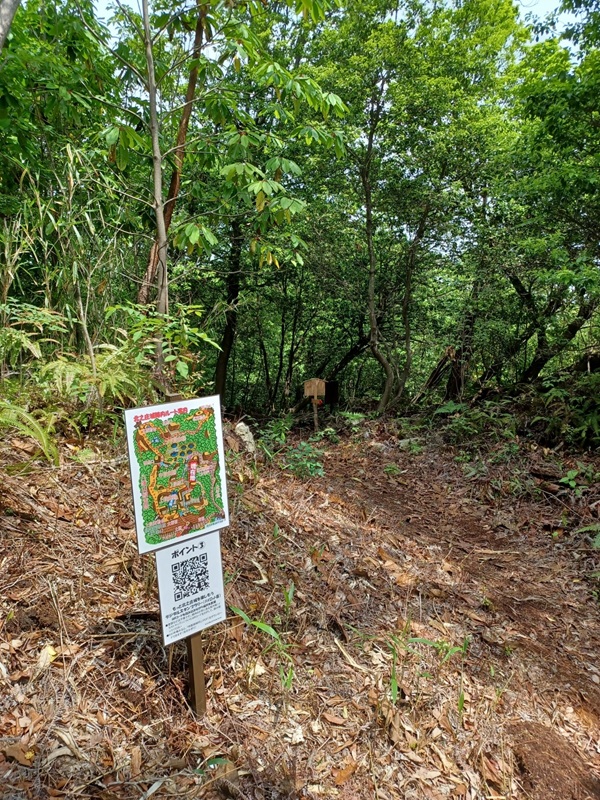 北之庄城跡一帯に城跡散策が2倍楽しくなるデジタルスタンプラリーを設置しました。城跡内の代表的見どころ6か所を巡って、スマホを使って設置されたQRコードを読み取っていきます。