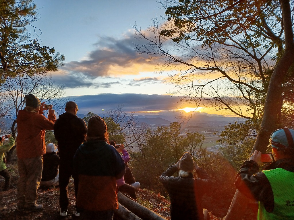 北から流れてくる雲を心配しましたが、7時20分頃、綿向山の上にかかる雲をぬけて昇る見事な初日の出を拝むことができました。