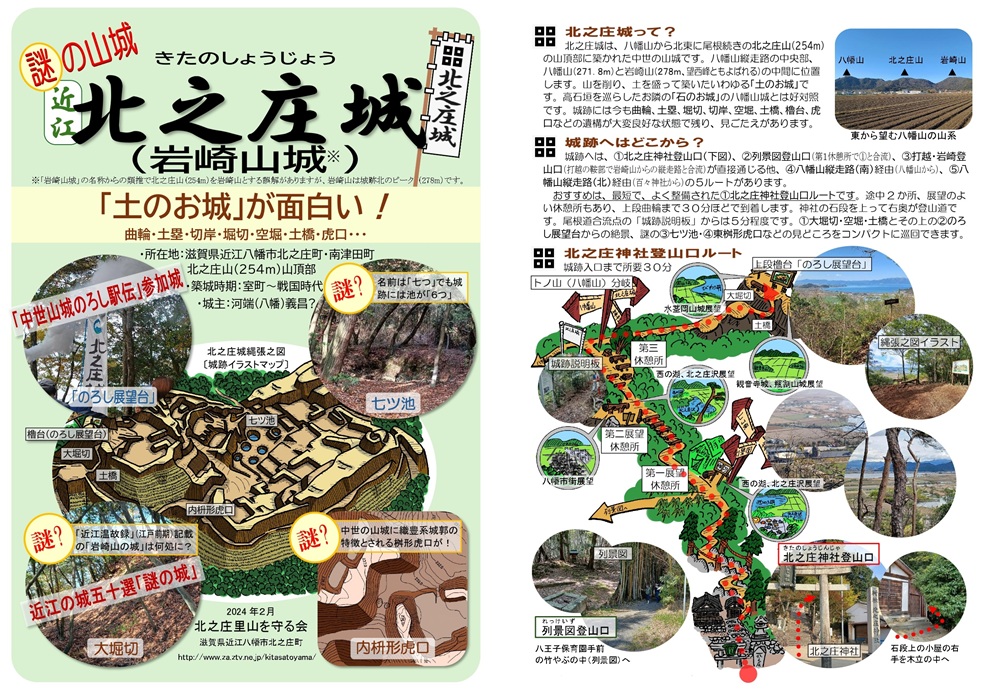 …北之庄城の解説と案内(アクセス、のろし駅伝、歴史と城主、七つ池の昔話、長命寺街道散歩)&城跡詳細測量図と見所写真による散策路案内(B4判観音開き仕様)